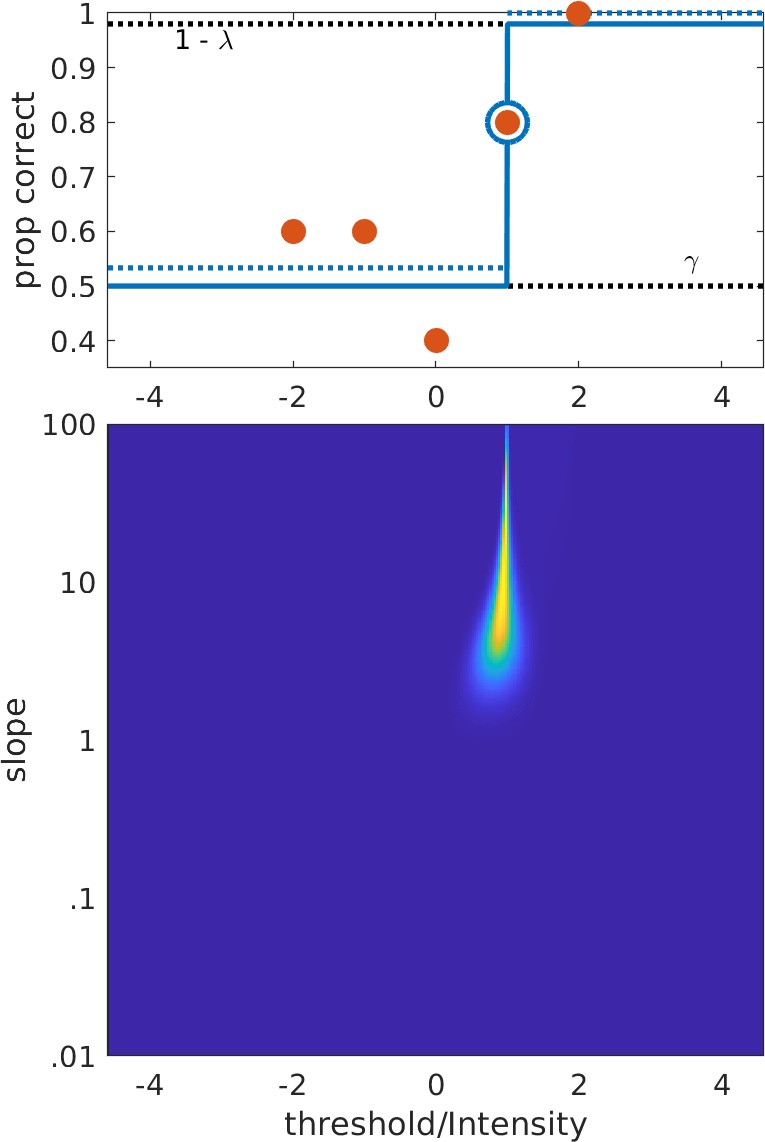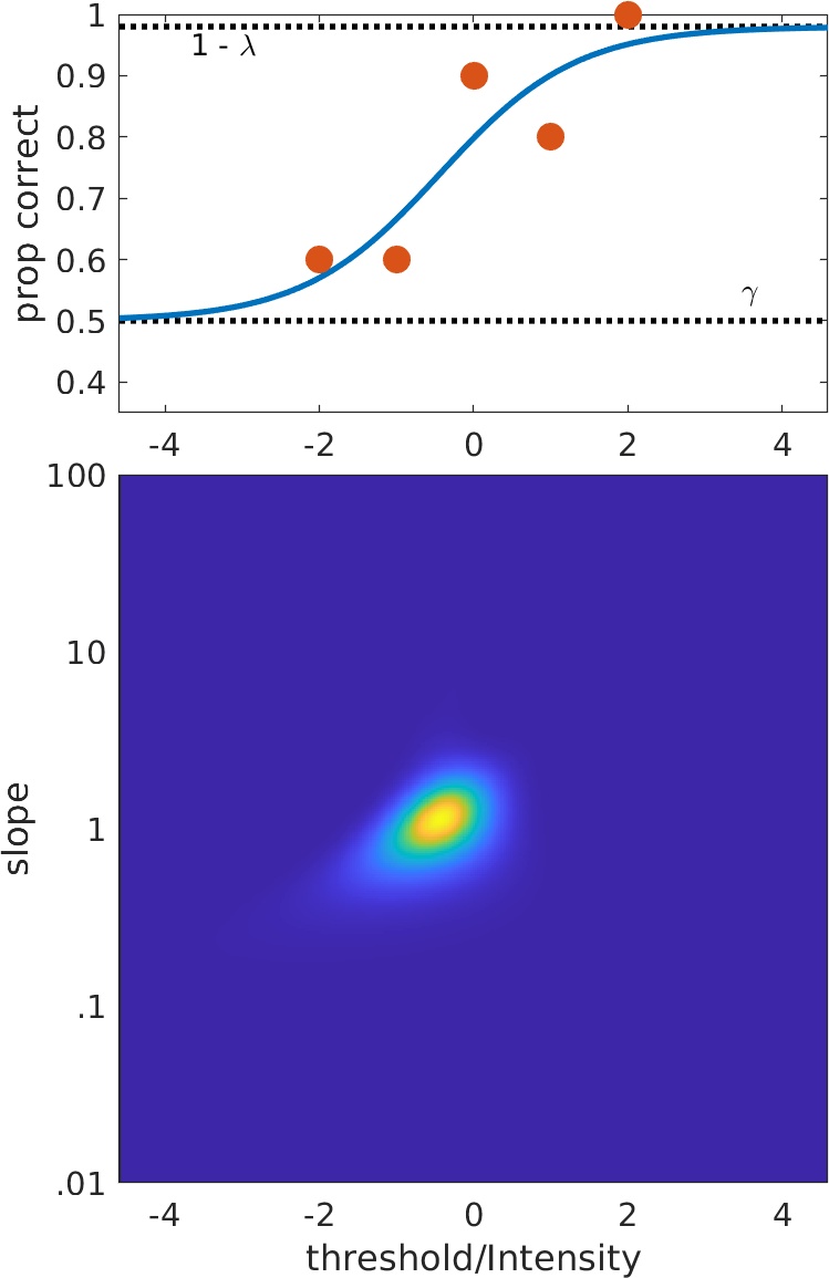stimuli near location ('threshold') parameter (e.g., up/down, best Pest, Quest). Very little information here as to what value of location parameter may be but slope parameter is likely low