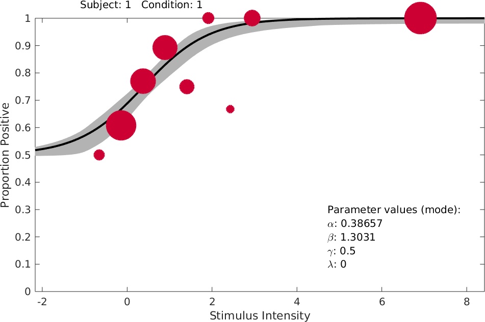 Bayesian hierarchical fitting of single psychometric function.
