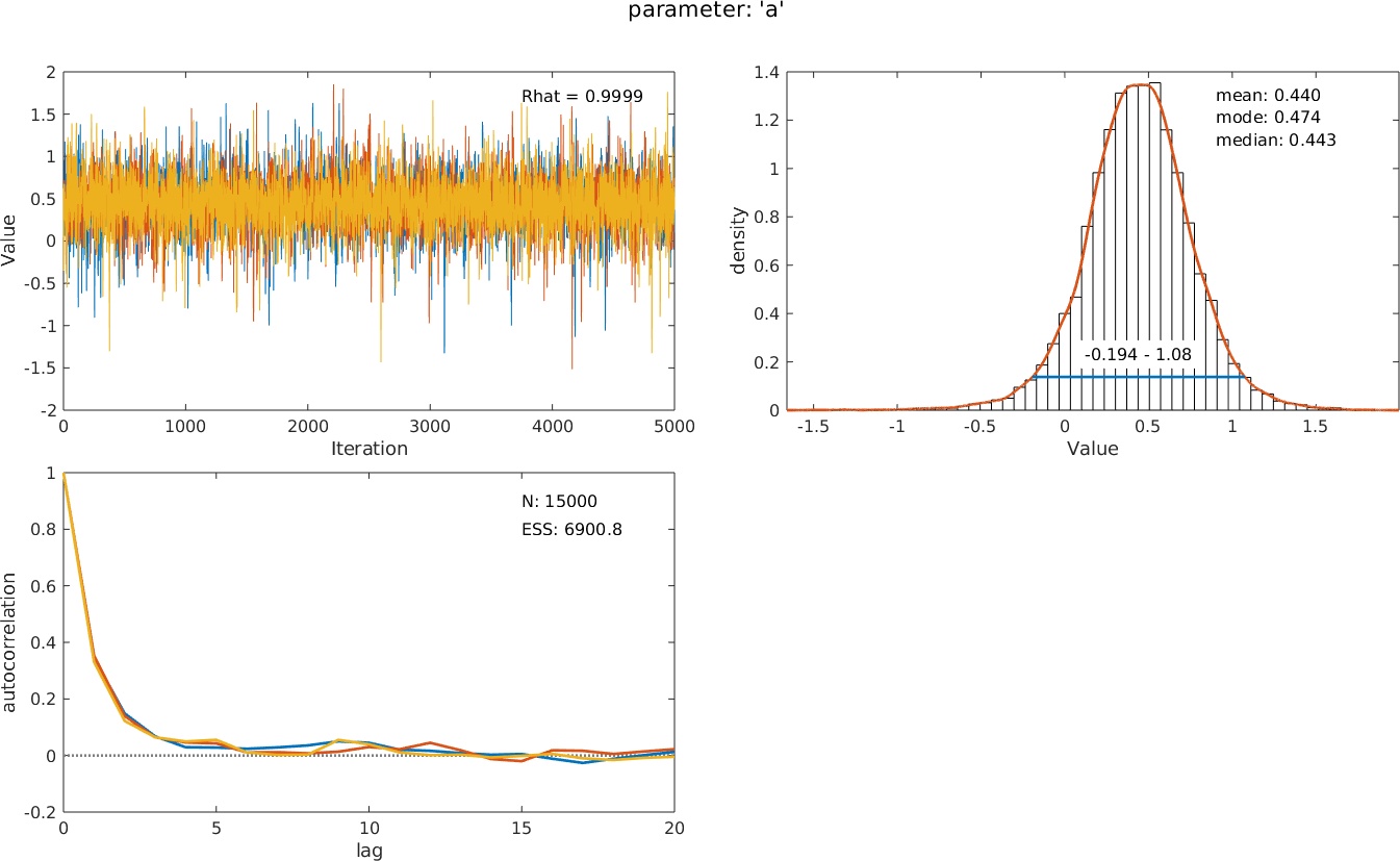 >> PAL_PFHB_inspectParam(pfhb)creates a graph of the posterior distribution of any of the free parameters (by default the