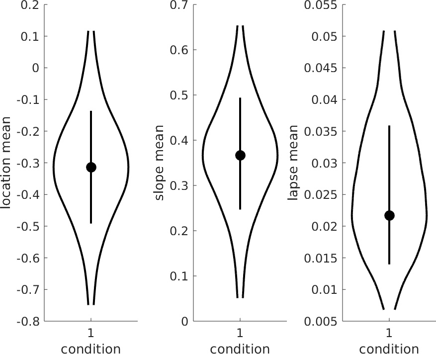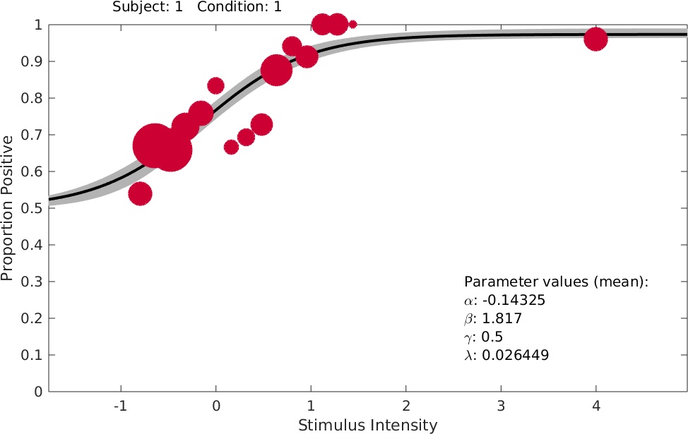 PAL_PFHB_MultipleSubjectsSingleCondition_Demo: Hierarchical Bayesian fitting of psychometric functions obtained from multiple subjects testing in single conditions. Visit our