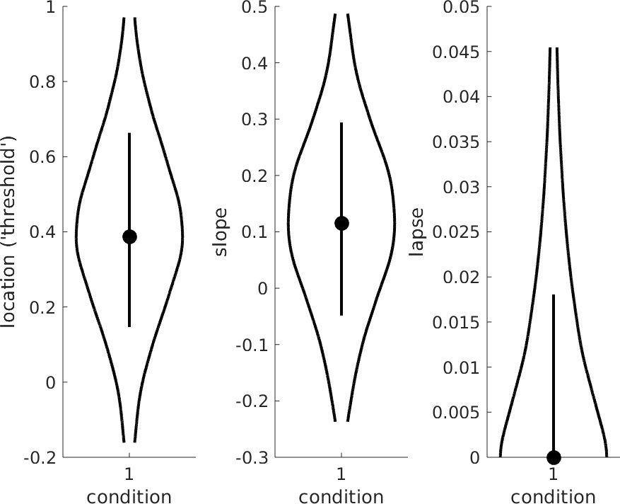 PAL_PFHB_SinglePF_Demo: Bayesian fitting of psychometric functions obtained from single subject testing in a single condition. Visit our