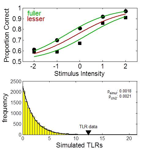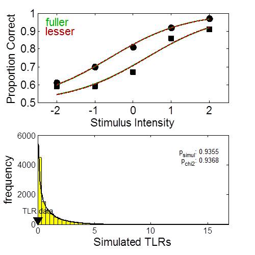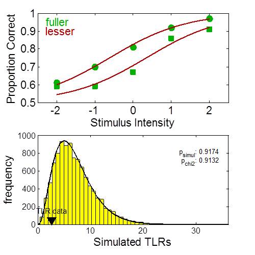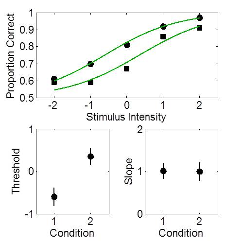 Figure 2. Model Comparison: individual thresholds and slopes versus common threshold and slope (i.e., are thresholds and/or slopes different?).